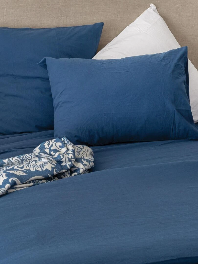 Taie d'oreiller en coton lavé Bleu pétrole