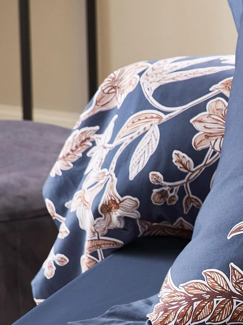 Taie de traversin en satin Botanic Bleu marine