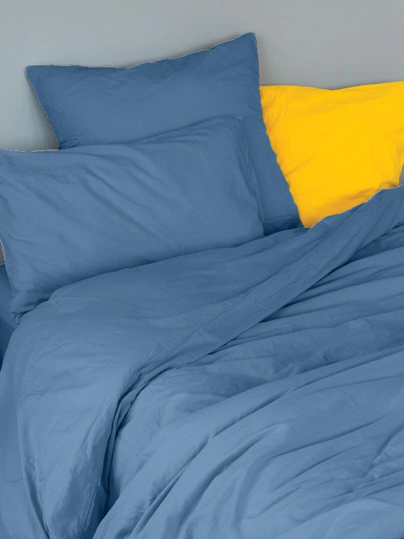 Taie d'oreiller en coton lavé Bleu