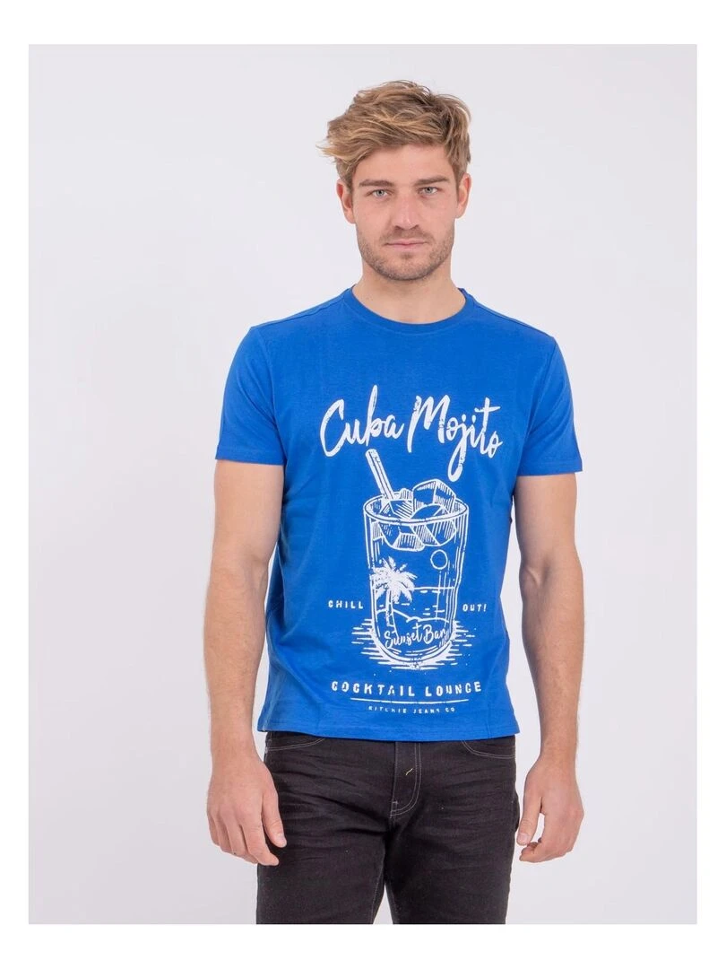 T shirt manches courtes col rond pur coton NOGAN Bleu roi