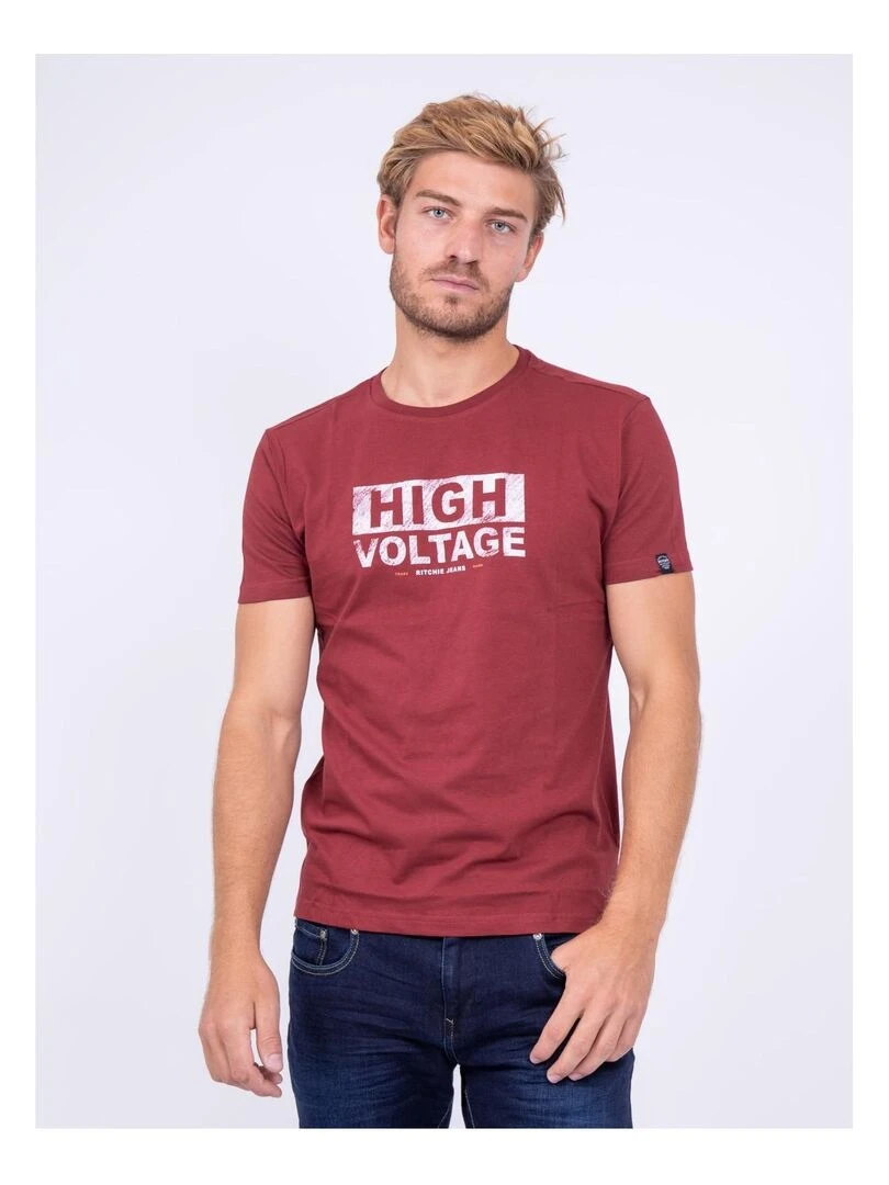 T shirt col rond pur coton JATMAN Bordeaux