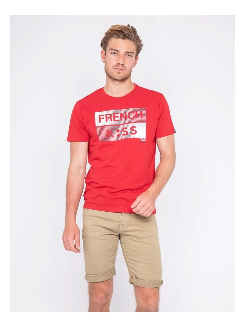 T shirt col rond pur coton NEBULO Rouge