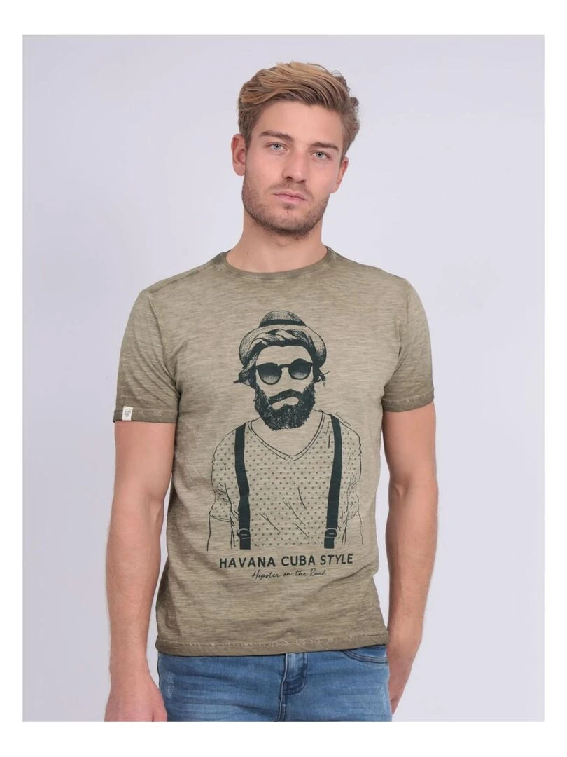 T shirt col rond pur coton NALTOX Vert kaki clair