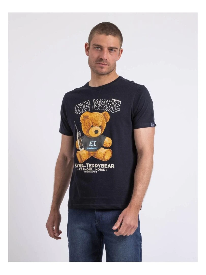 T shirt col rond pur coton NABOJAN Noir