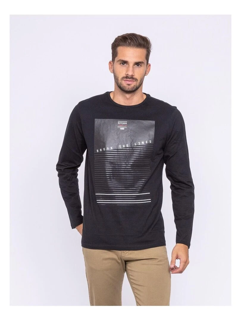 T shirt manches longues col rond pur coton JUVIGNY Noir