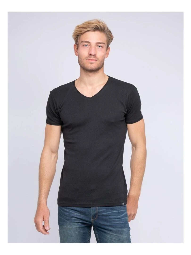 T shirt col V pur coton organique WORD Noir