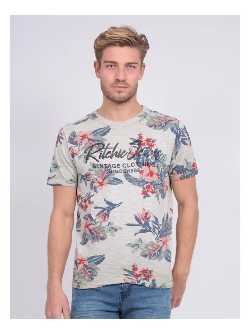 T shirt col rond pur coton NALKO Beige
