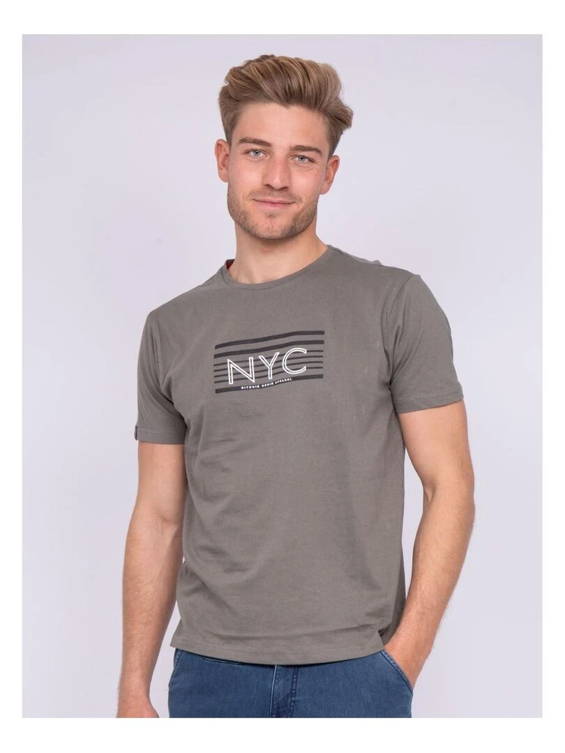 T shirt col rond pur coton NARLO Kaki