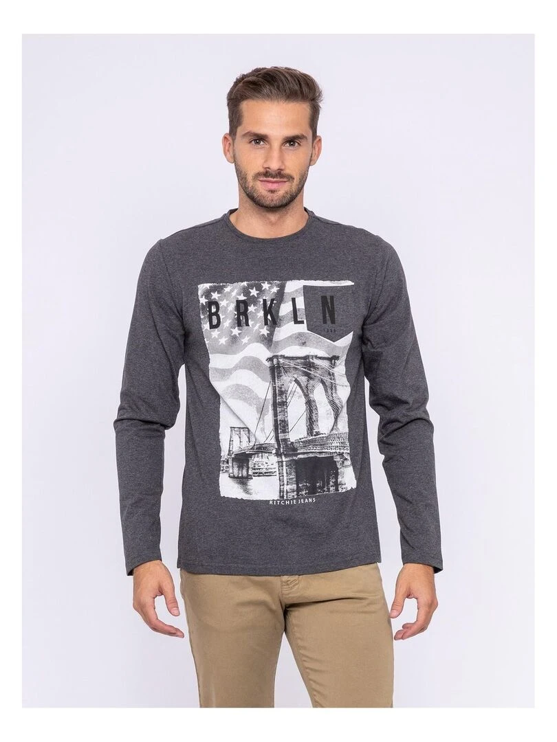 T shirt manches longues col rond pur coton JURTON Gris