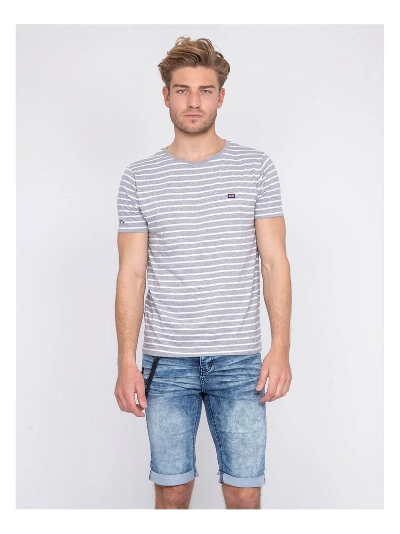 T shirt col rond pur coton rayé NORWICO Gris