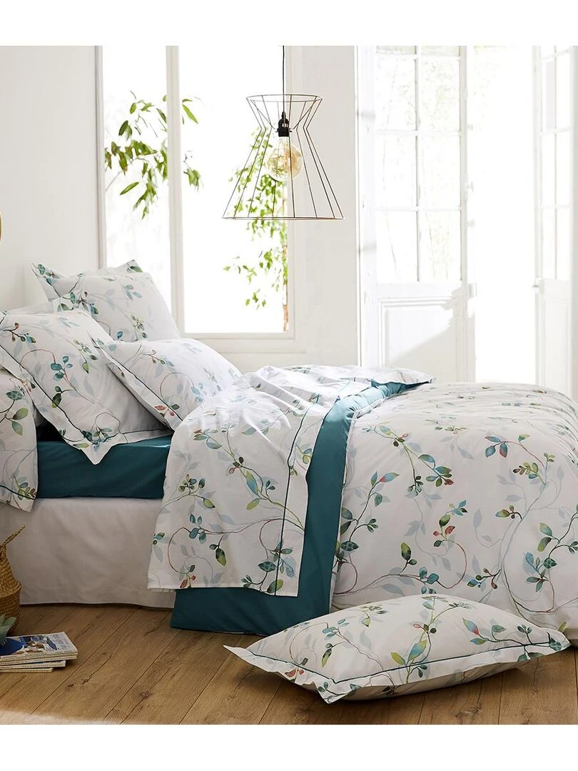 Parure de draps 4 pièces imprimée de fleurs en aquarelle Blanc