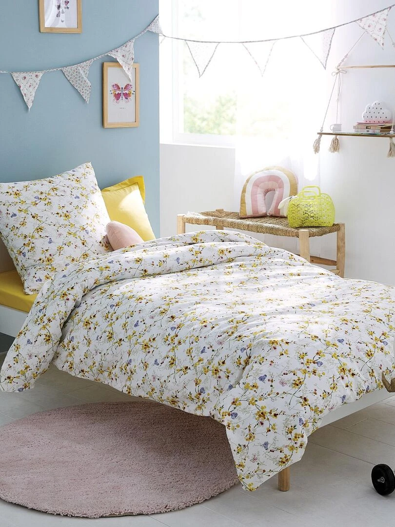 Housse de couette imprimée papillons fleuris Jaune