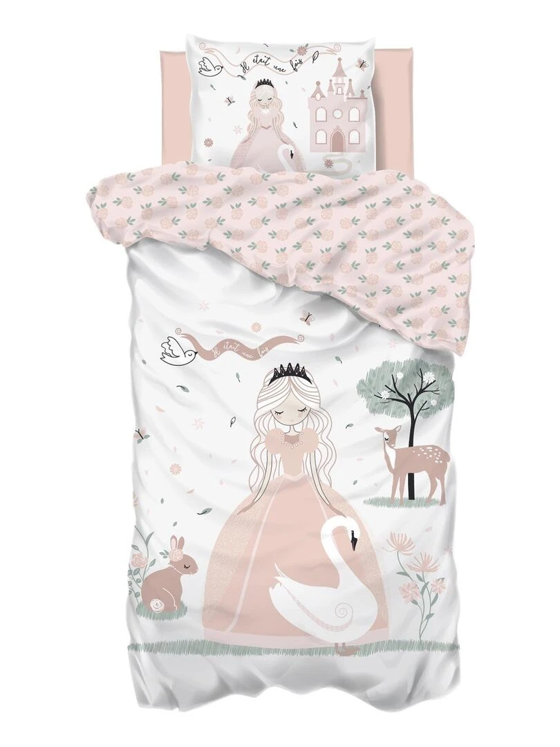 Parure de lit la princesse et ses animaux Rose