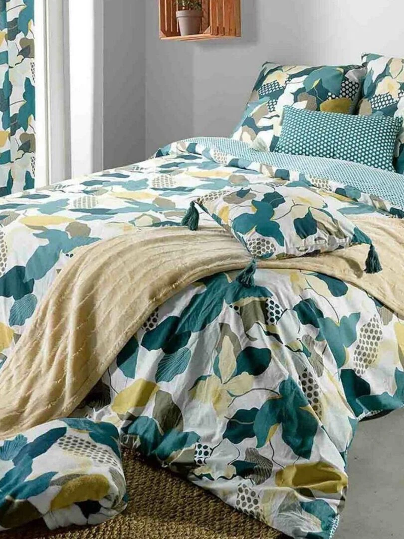 Ensemble draps et taie imprimé fleurs Blanc
