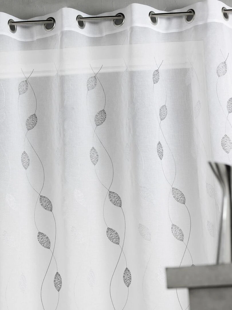 Voilage en étamine et feuilles brodées Gris clair