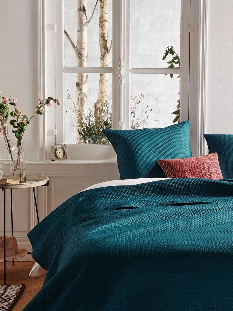 Couvre lit et ses 2 taies assorties Bleu canard