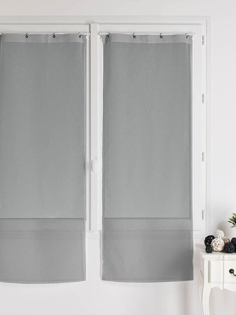 Paire de vitrages à anneaux noirs et amovibles Gris clair