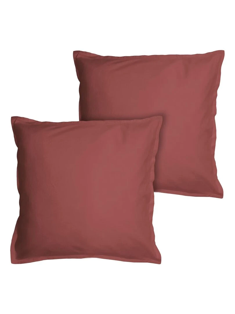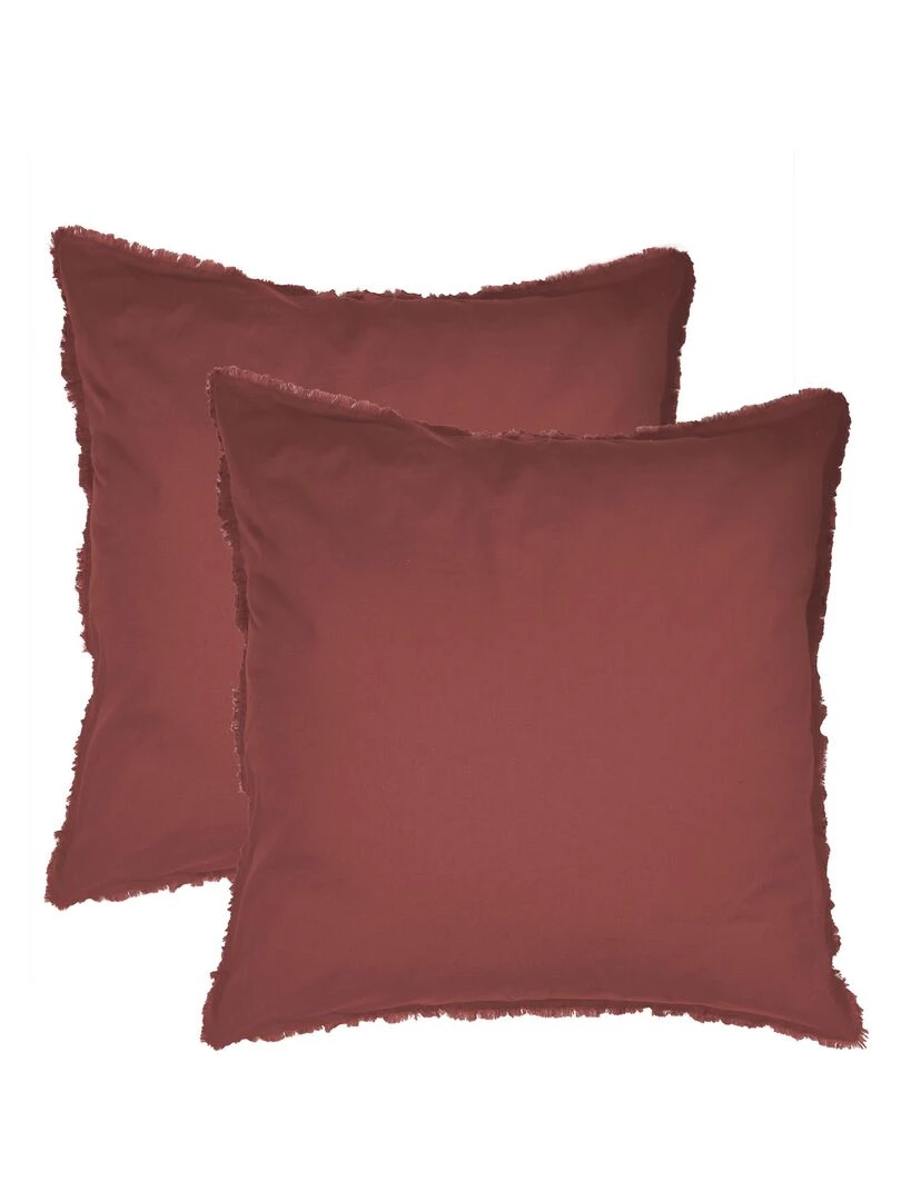 Set de 2 taies d’oreiller unies à volant COTON LAVÉ Bordeaux