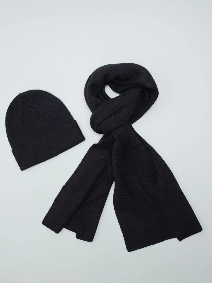 Set bonnet + écharpe Noir