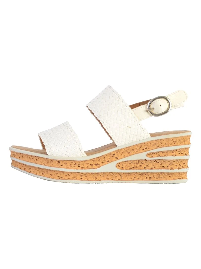 Sandale Compensée Cuir Gabor Flecht Beige