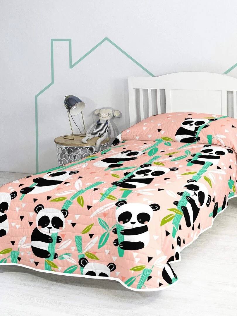 Couvre lit Panda garden "Happyfriday" Rose