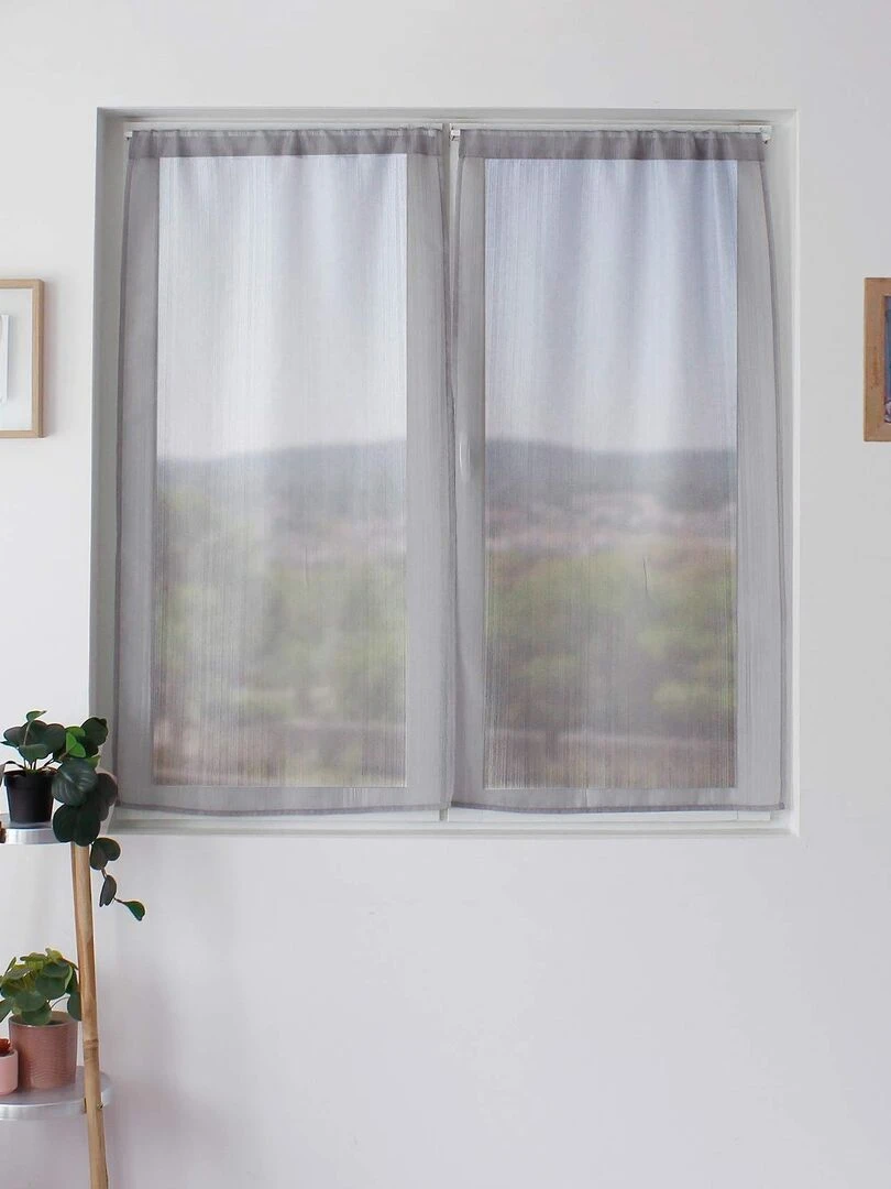 Paire de petits vitrages à bande tissée Gris clair