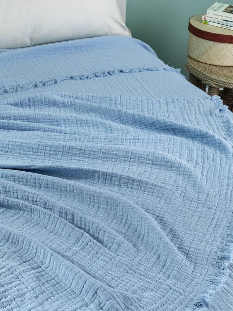 Dessus de lit gaze de coton Bleu ciel