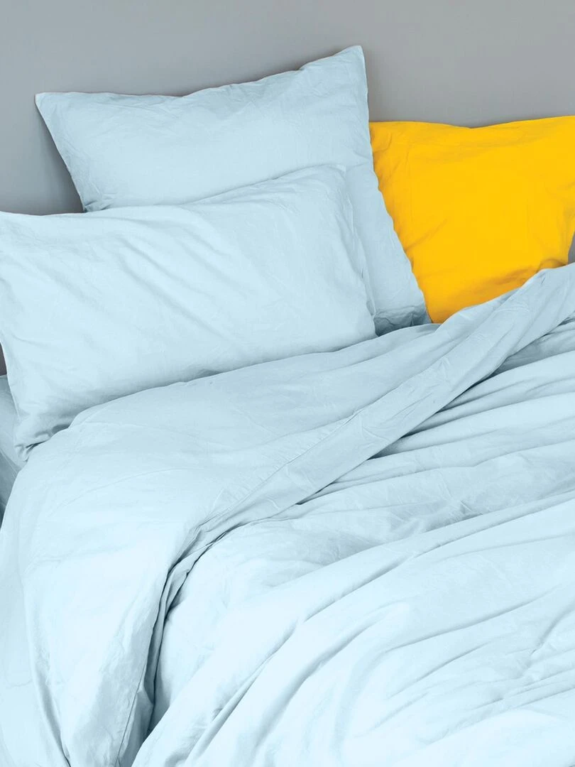Housse de couette unie en coton Lavé Bleu turquoise