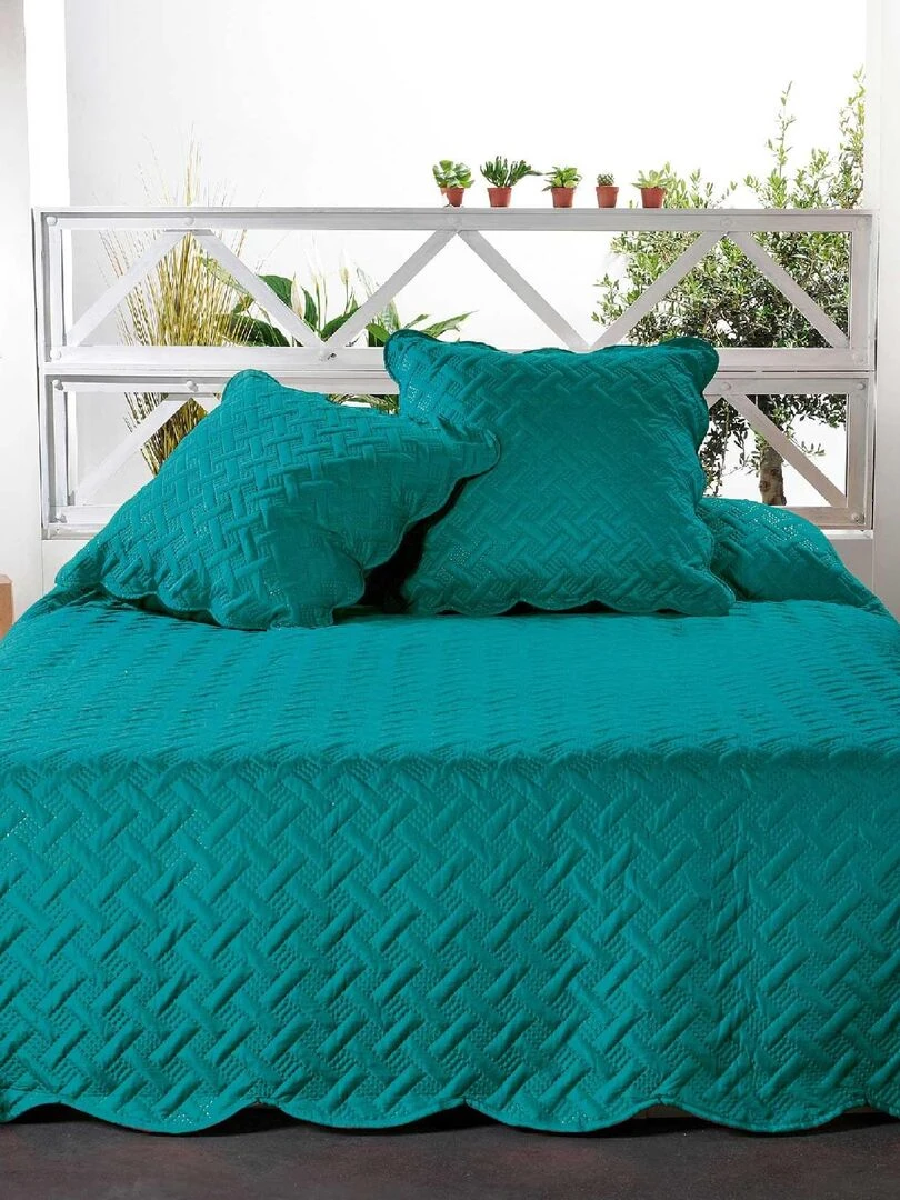 Couverture molletonné surpiquage graphique Bleu turquoise