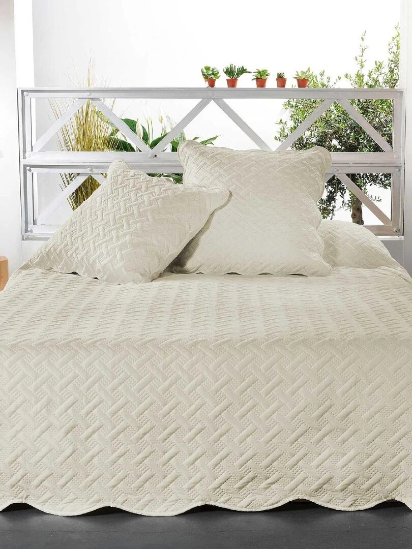 Couverture molletonné surpiquage graphique Beige