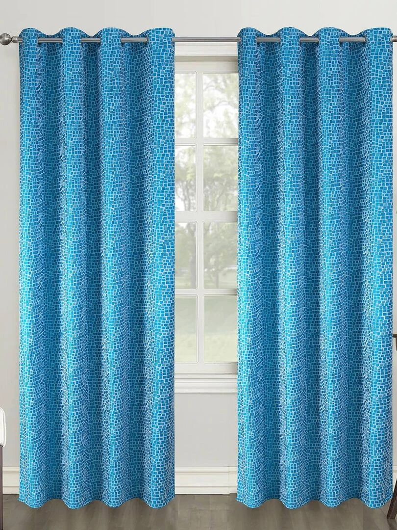 Paire de rideaux obscurcissants au style géométrique Bleu