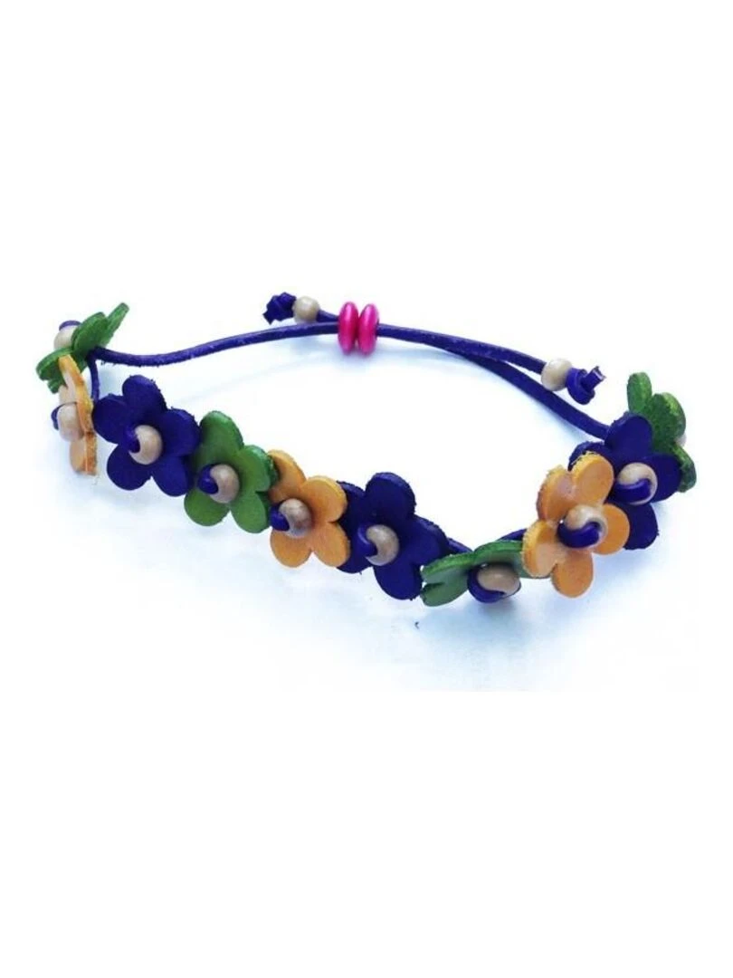 bracelet en cuir avec fleurs Bijoucolor Bleu Jaune