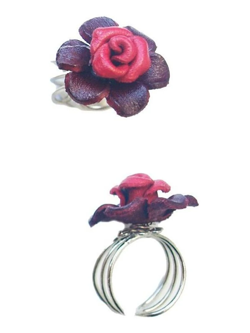 Bague FLEUR forme rose en cuir Bijoucolor Rouge