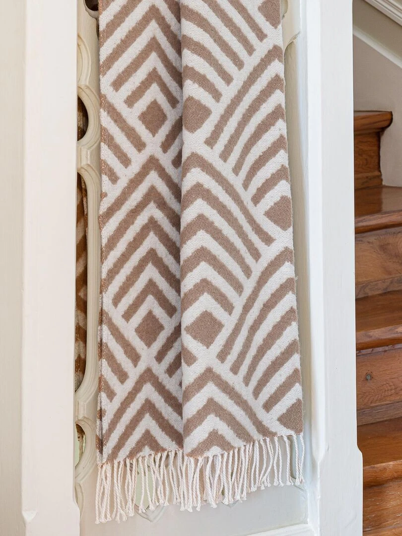 Plaid en coton mélangé motif chevron Marron clair