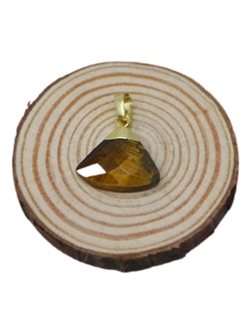 Pendentif trapèze Plaqué or Pierres naturelles Marron