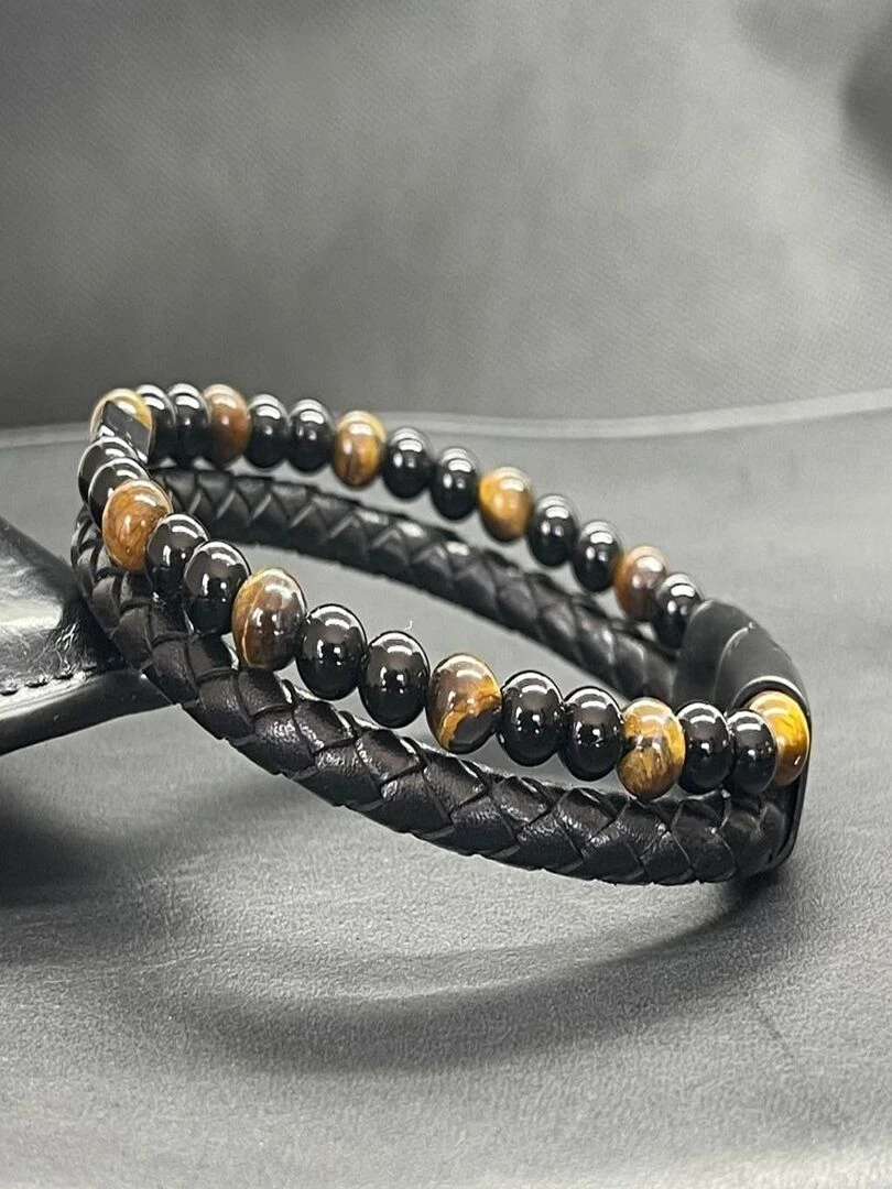 Bracelet en oeil de tigre et obsidienne Noir