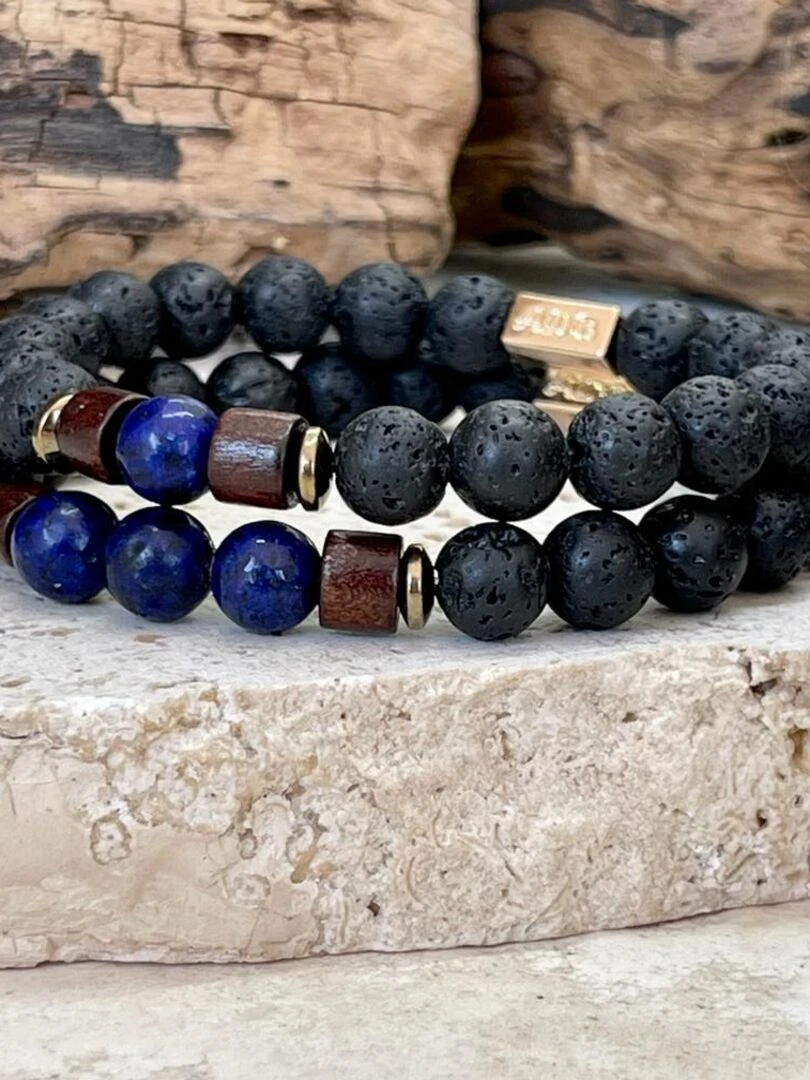 Bracelet magma couple en lapis lazuli Blanc Bleu