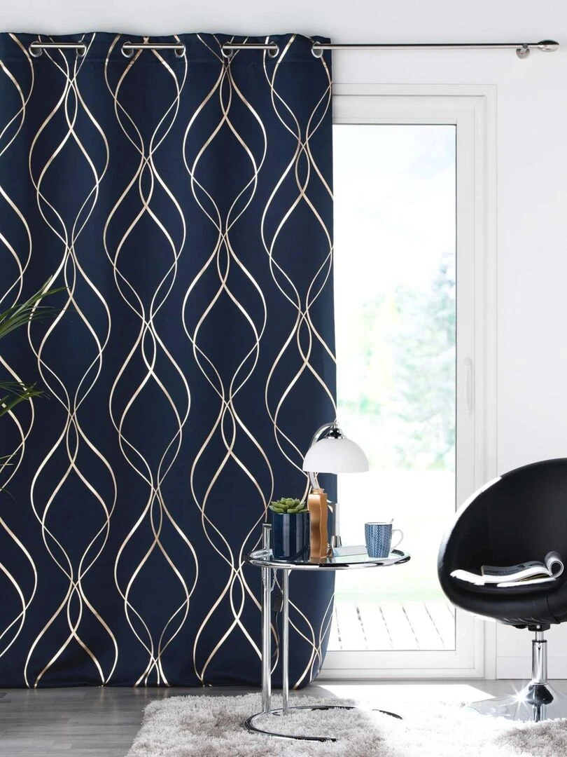 Rideau occultant à impressions métallisées Bleu marine