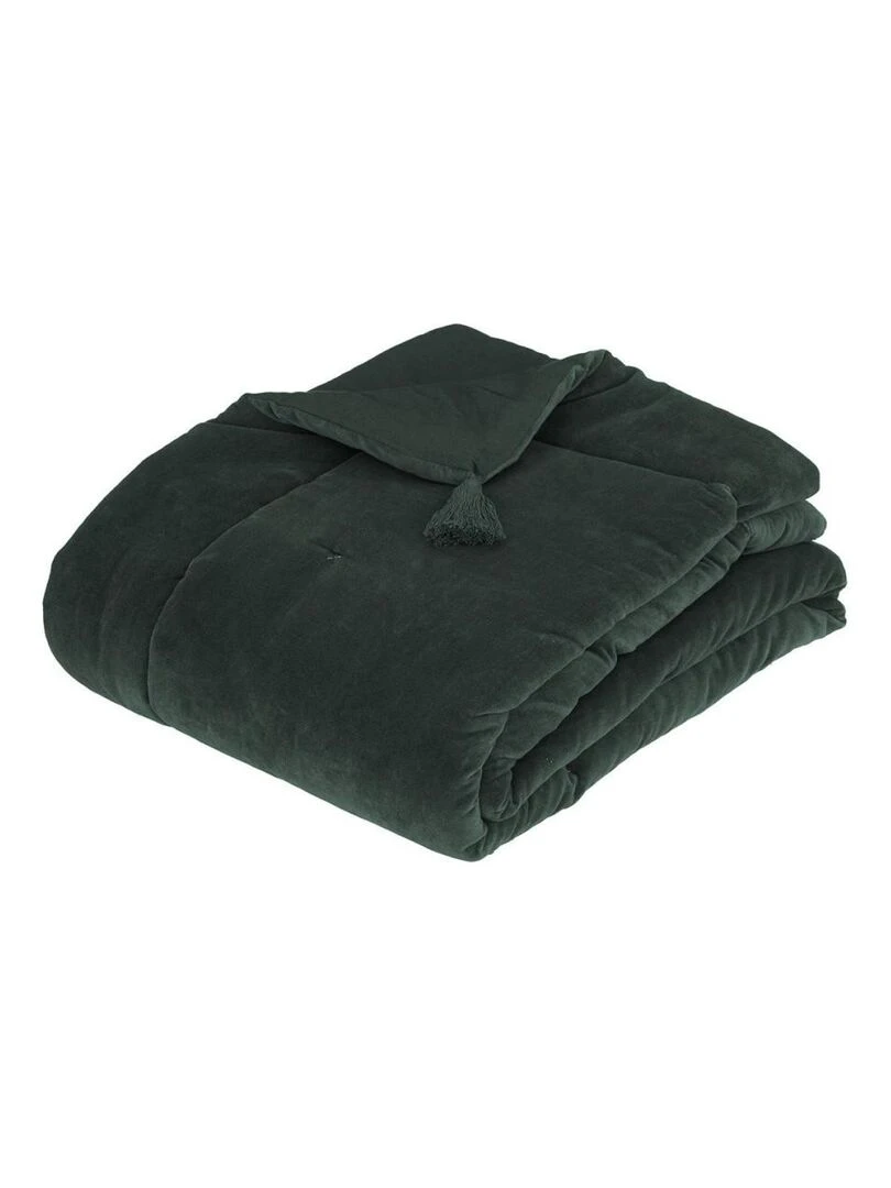 Édredon velours 70x180 Night coton gris vert foncé Gris