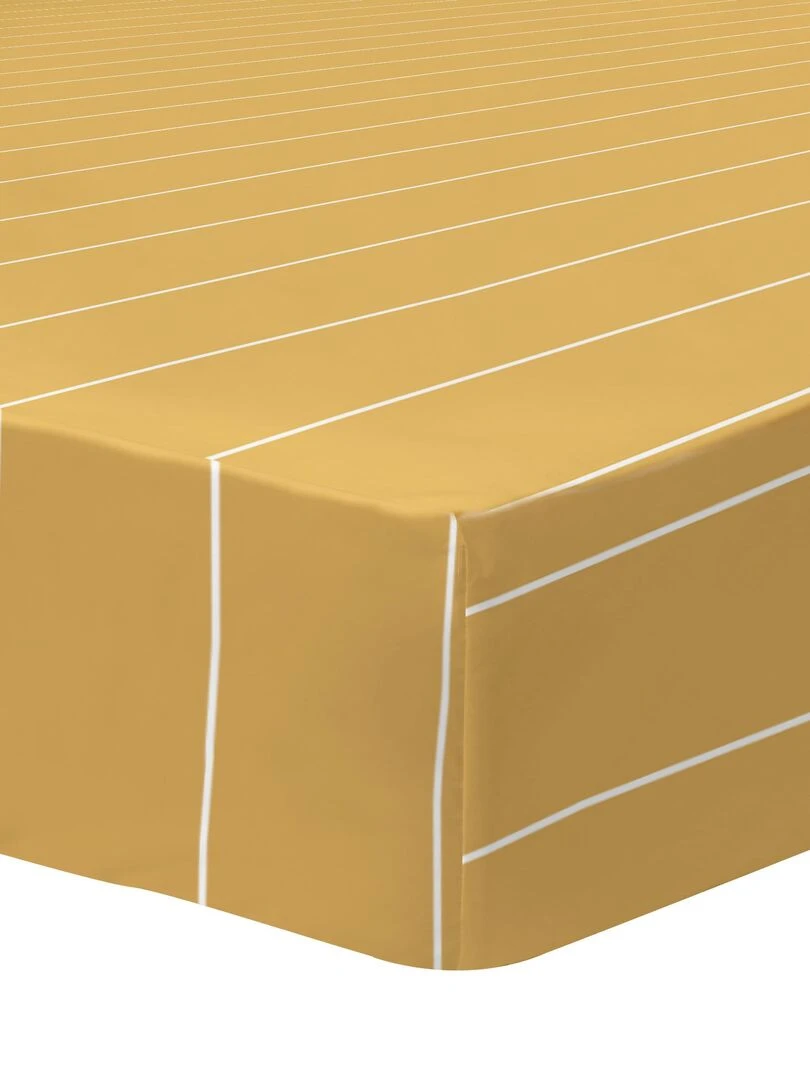 Drap housse imprimée 100% coton STRIPES Marron caramel