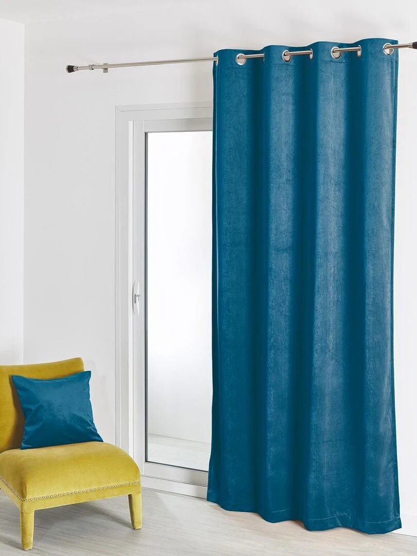 Rideau uni Effet velours coloré Bleu canard