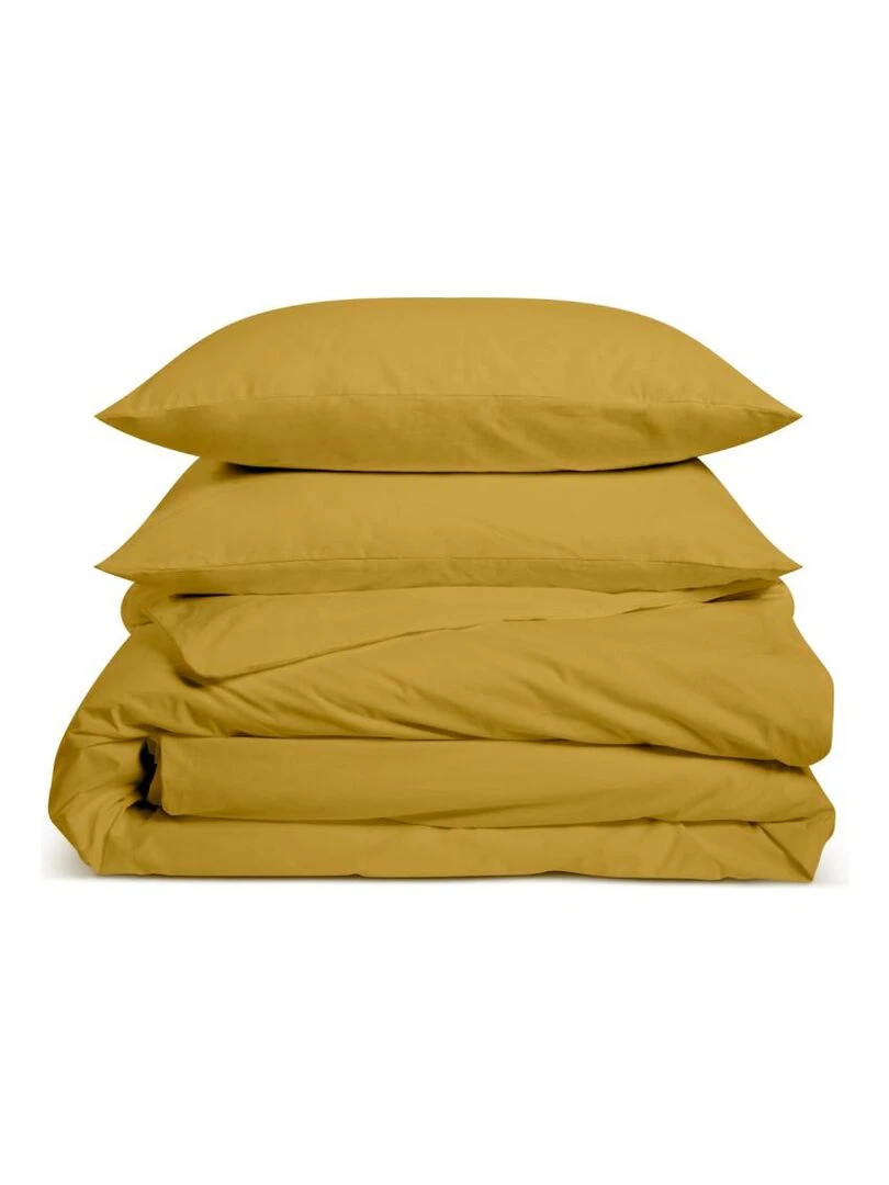 Housse de couette en percale de coton uni Jaune