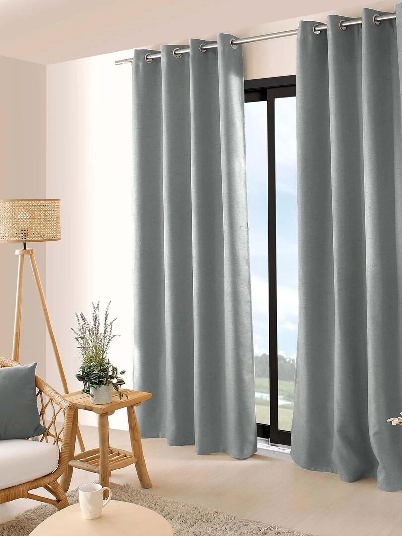 Rideau occultant uni et fileté Gris clair