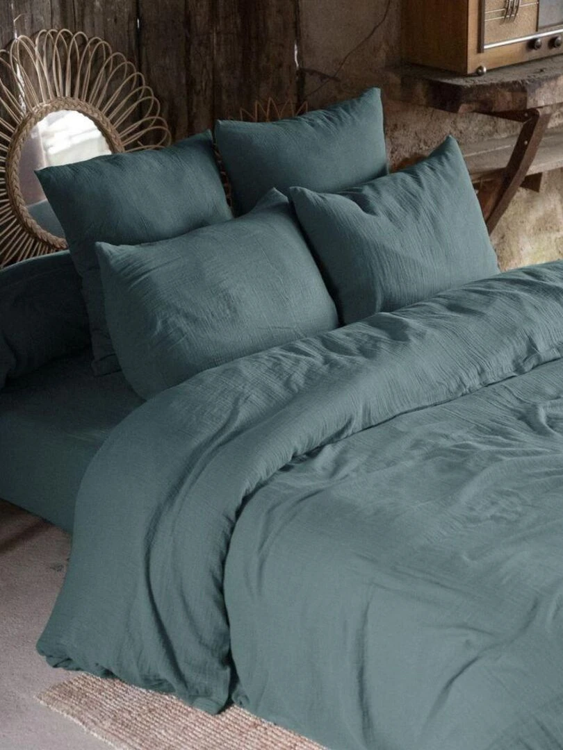 Housse de couette 100% Gaze de Coton Bleu canard