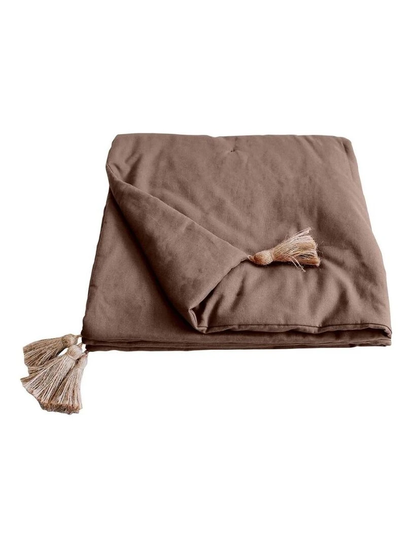 Édredon Panama 90x190 cm pompons jute vison Marron