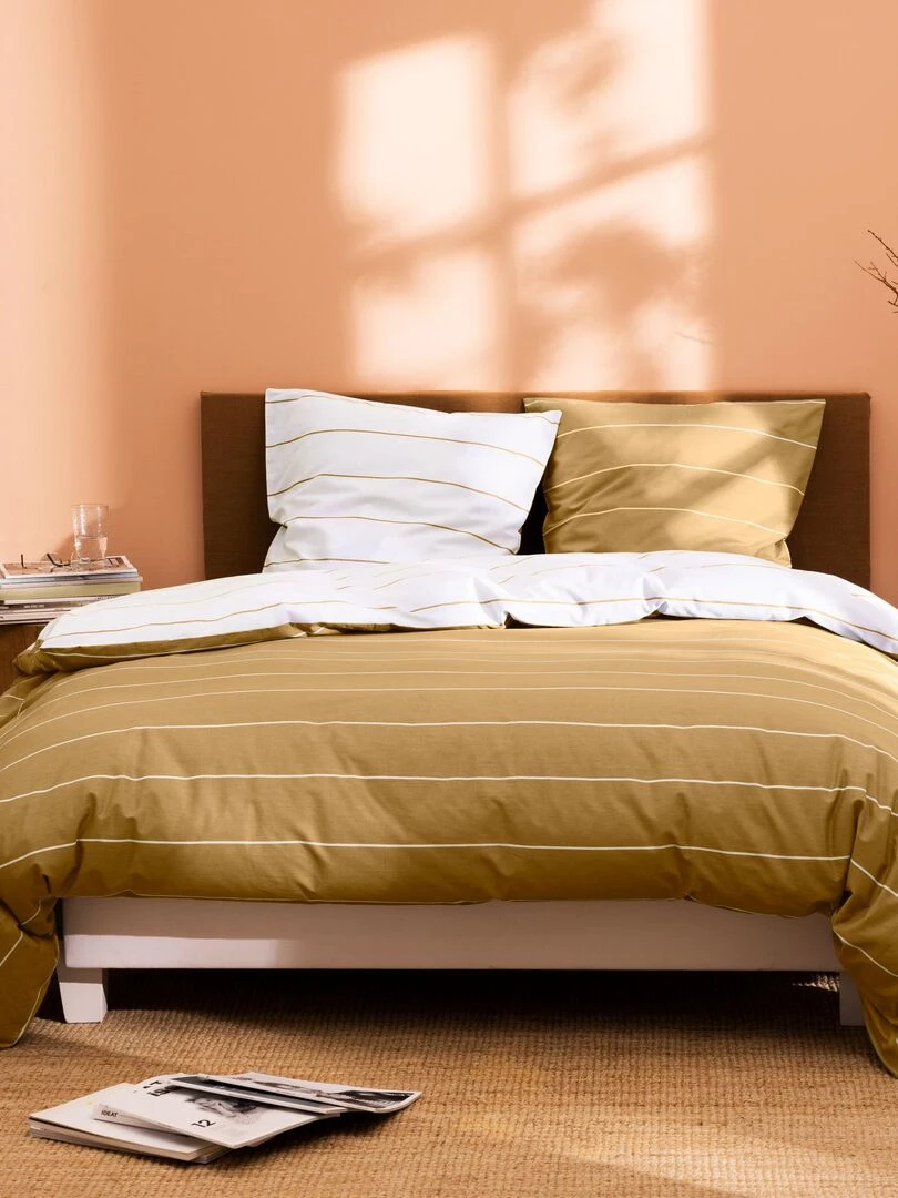 Parure de lit imprimée 100% coton STRIPES Marron caramel
