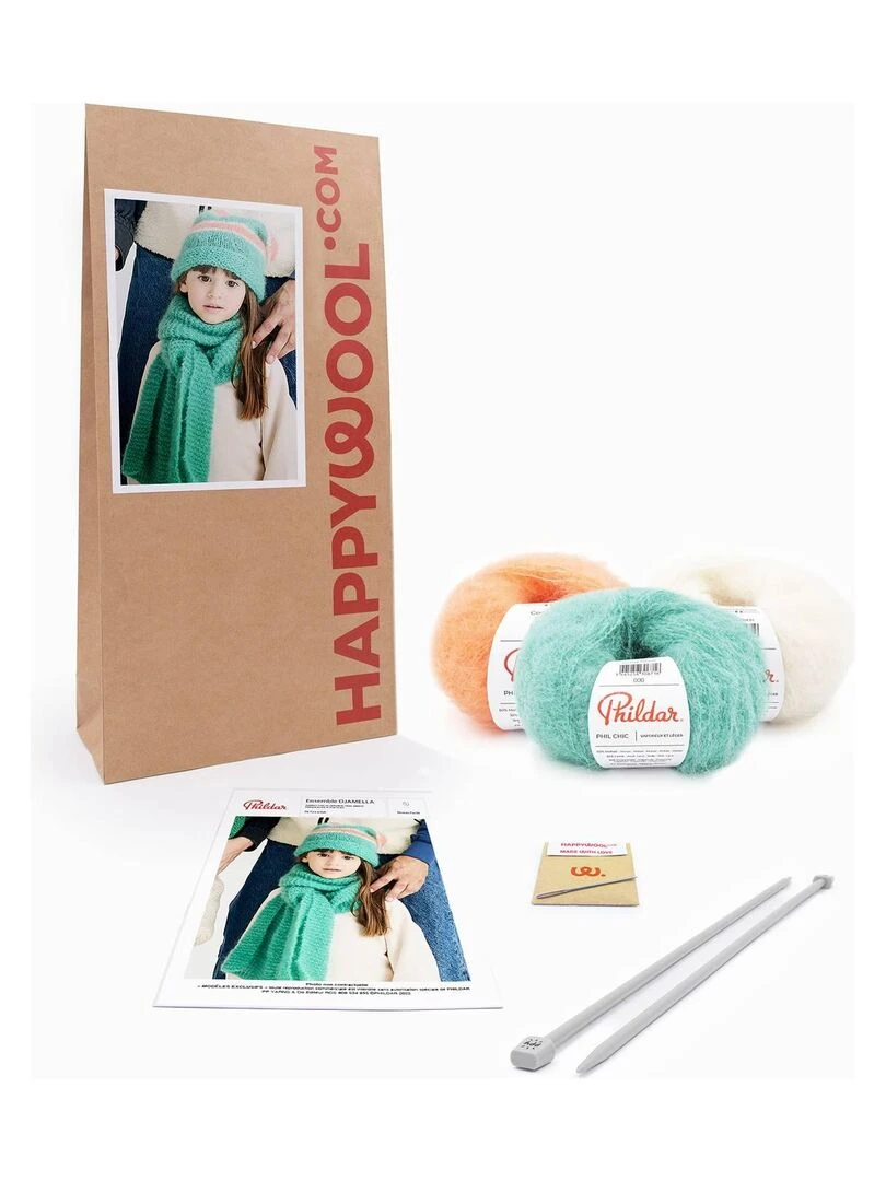 Kit tricot bonnet et écharpe Djamella Vert